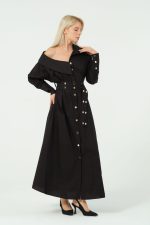 GOLD DÜĞME DETAYLI TEK OMUZ AÇIK GÖMLEK ELBİSE
