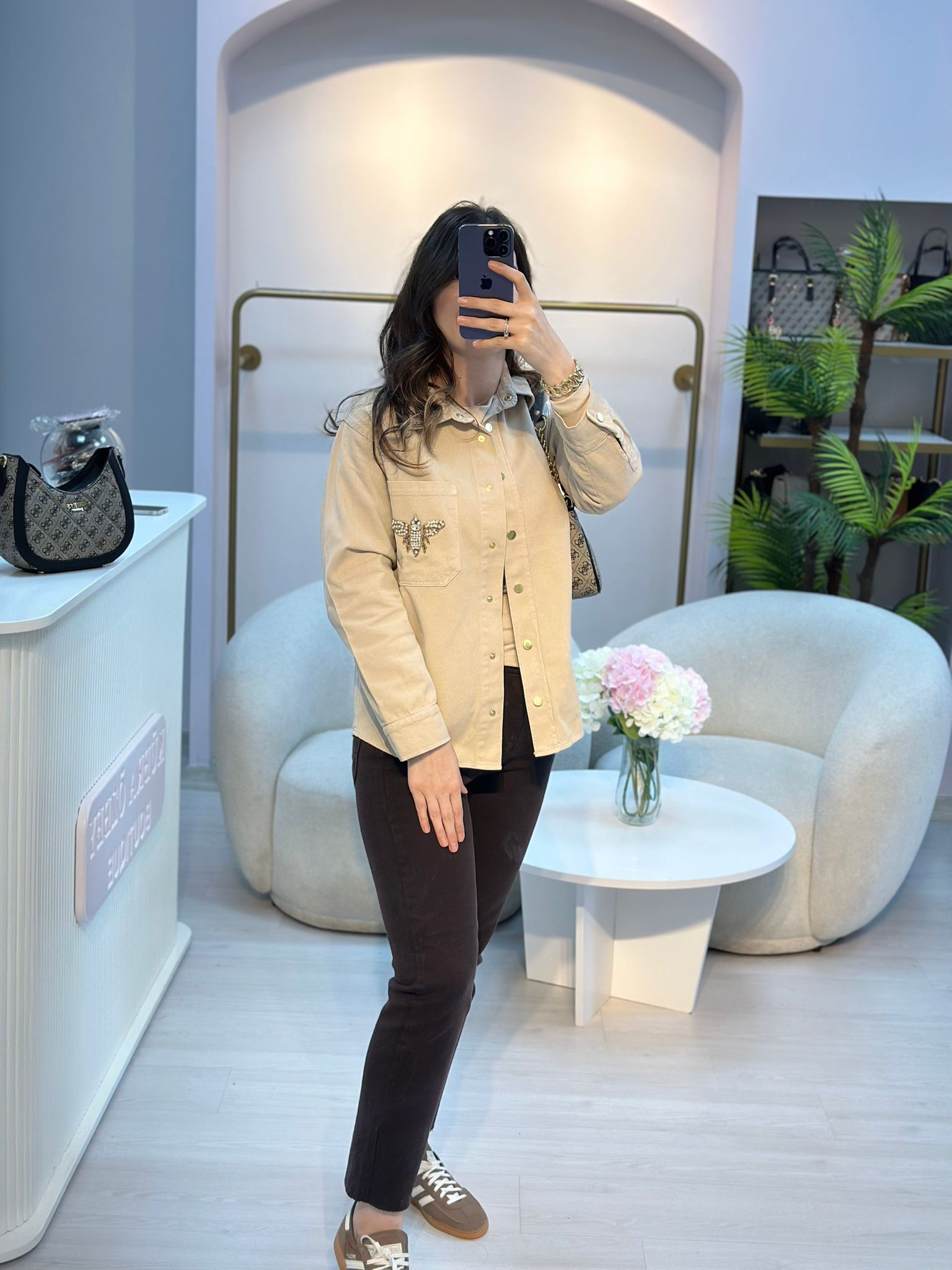 ORJİNAL MARKA BROŞ DETAYLI DENİM GÖMLEK CEKET