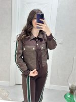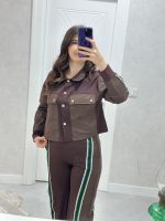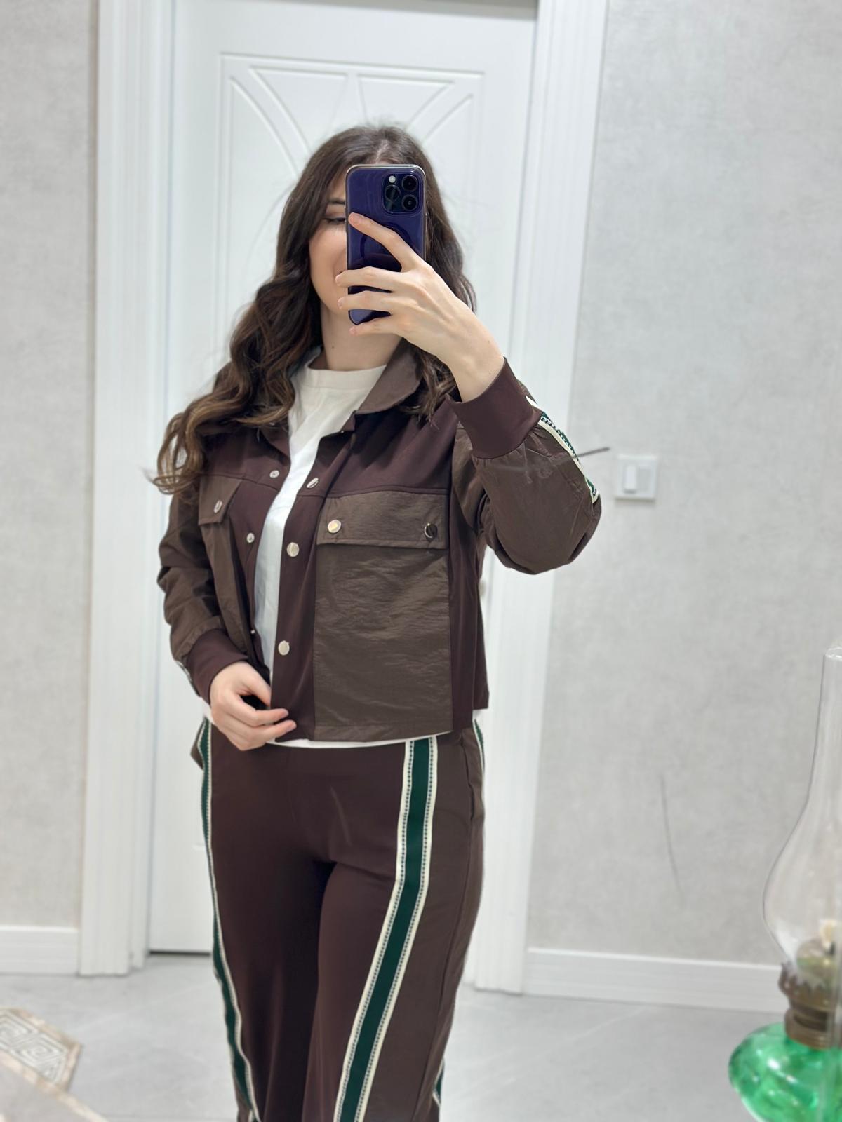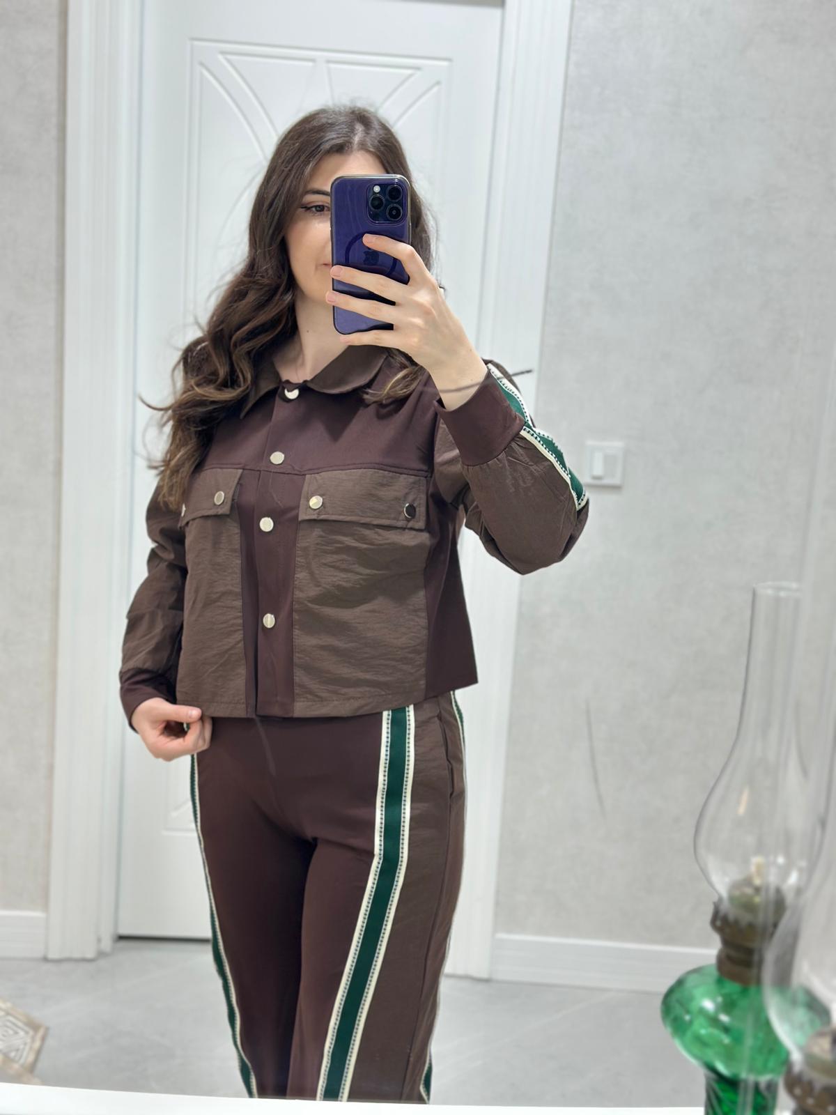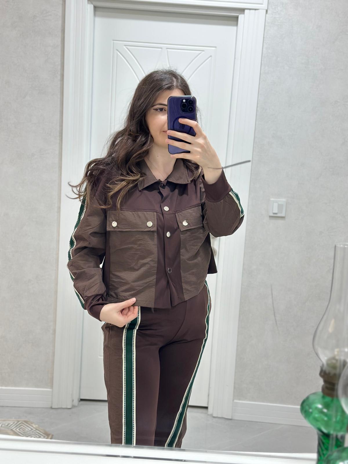 PARAŞÜT CEP DETAYLI YEŞİL ŞERİTLİ KAHVE TAKIM