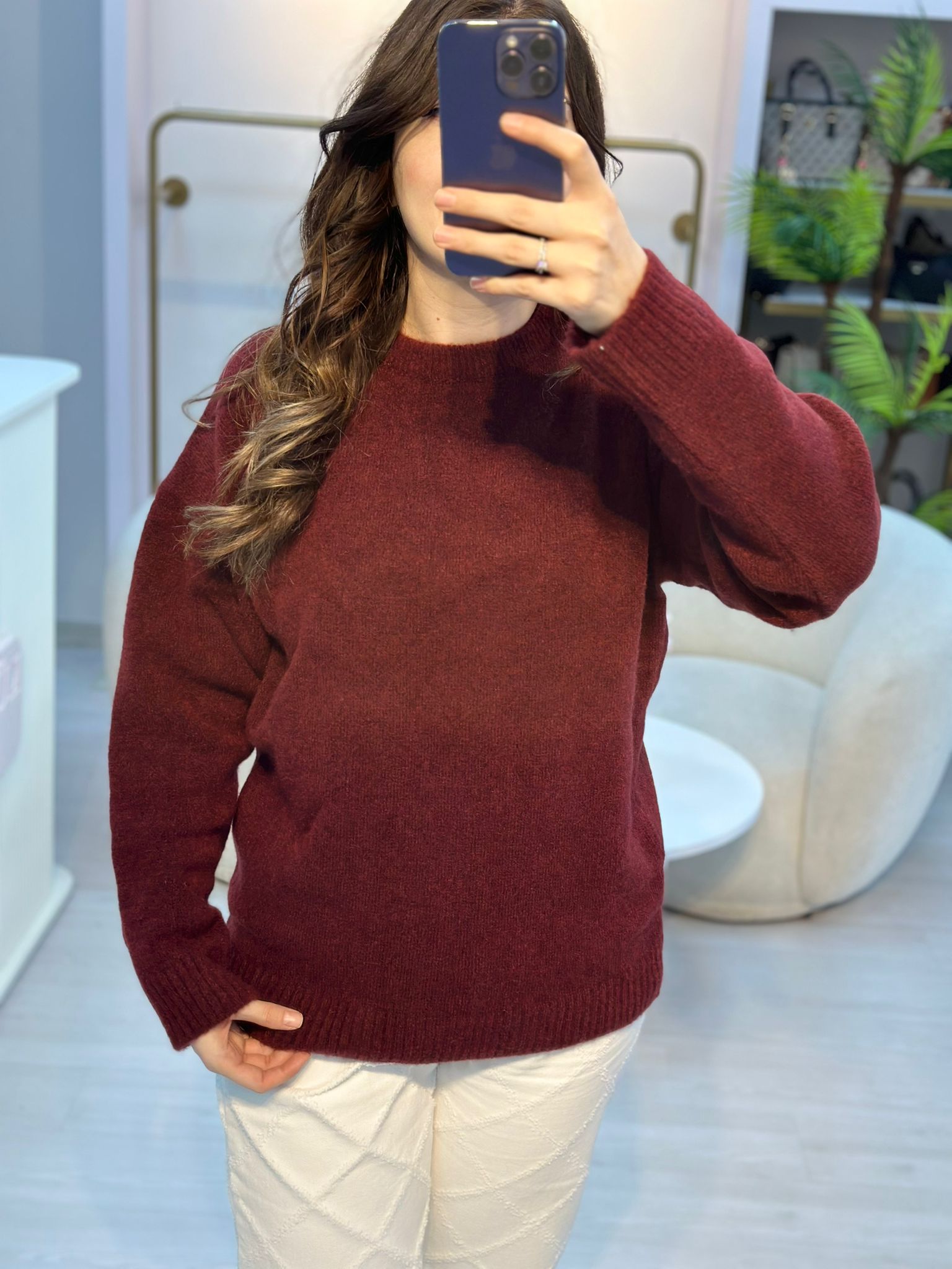 YUVARLAK YAKA YUMUŞAK DOKULU KİREMİT RENGİ TRİKO KAZAK